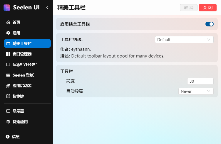 用户友好的配置: Seelen UI 提供直观的界面,便于定制。调整主题、任务栏布局、图标等设置。只需点击几下。