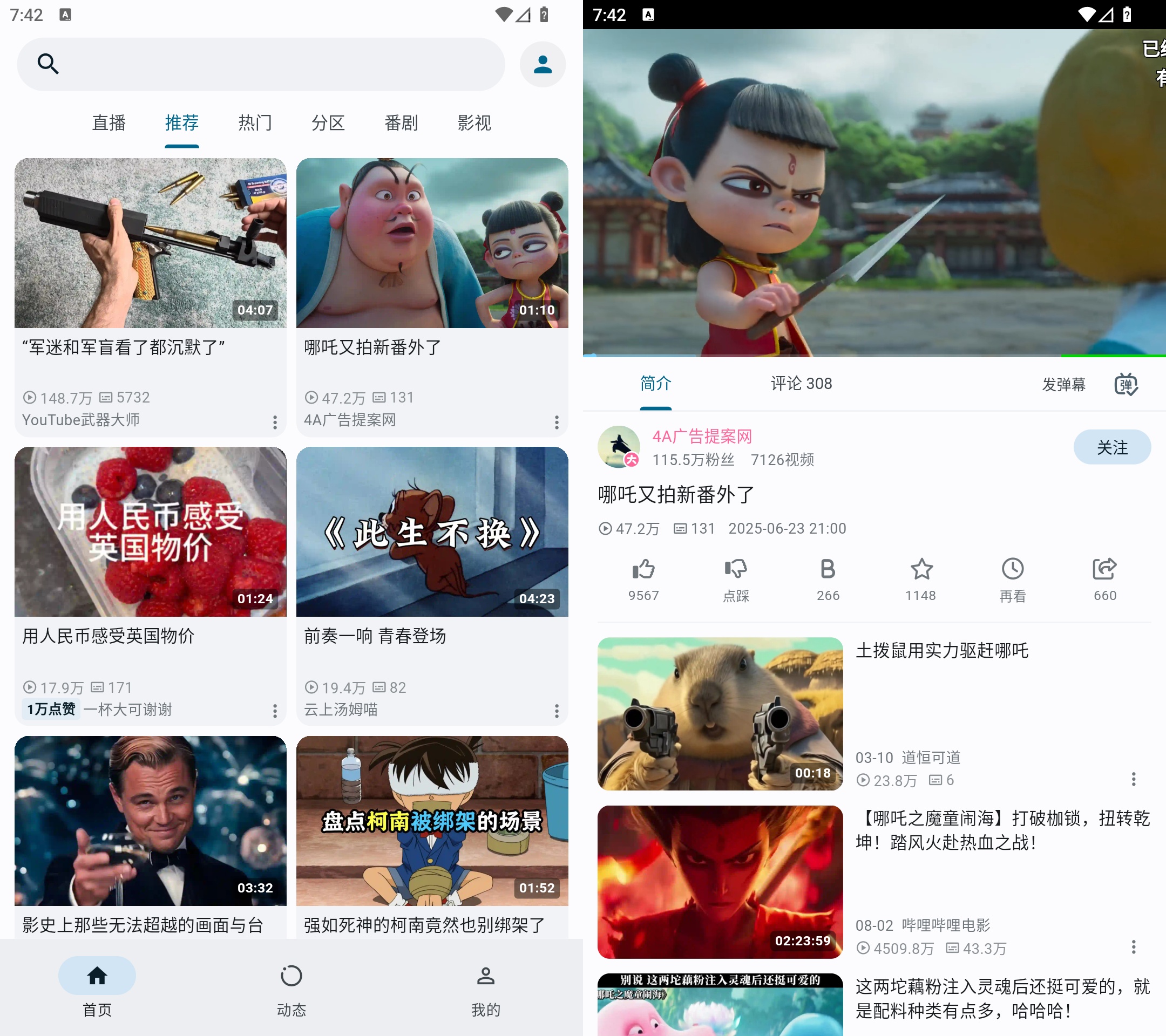 内容覆盖全面:支持直播、番剧、影视、分区等多维度内容,用户可自由浏览、搜索和观看视频。