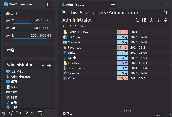 One Commander Pro 3是一款 Windows 下的文件管理器工具,支持多栏、多主题、多套图标、文件预览、色彩标签、彩色新旧文件识别等功能,高自定义,家庭用户可免费使用。在志愿者(如 @Krysl)的努力下,目前 One Commander 3 已内置简体中文。