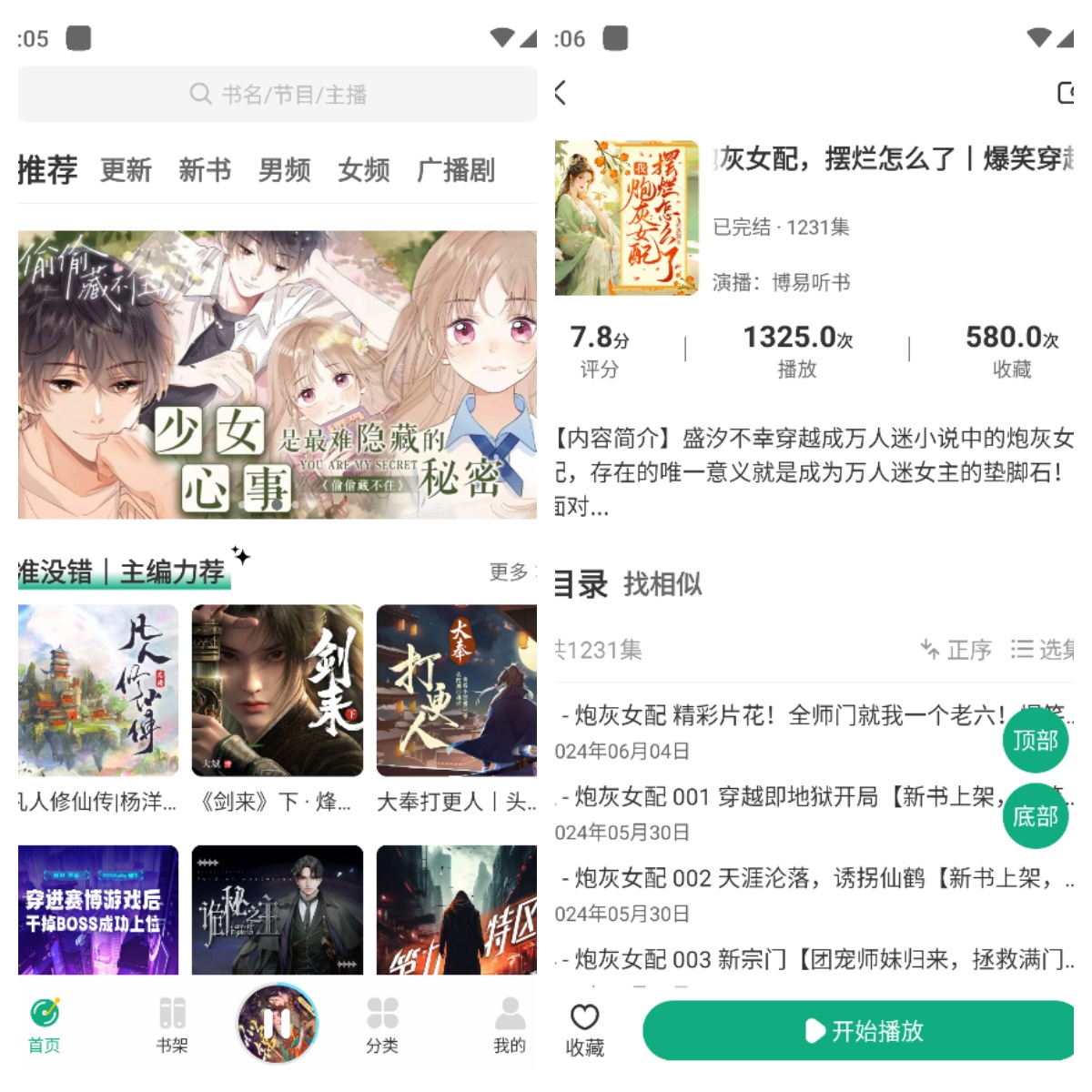 智能推荐:通过大数据分析用户的听读历史、收藏记录等数据,生成精准的个性化推荐,同时提供题材榜单,帮助用户发现高口碑内容。